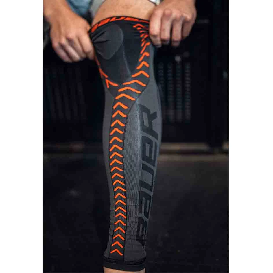 The Bauer Next Game Recovery Sleeve offers optimized compression for both muscle recovery and stability, with its graduated, 20-25 mmHg compression fit.