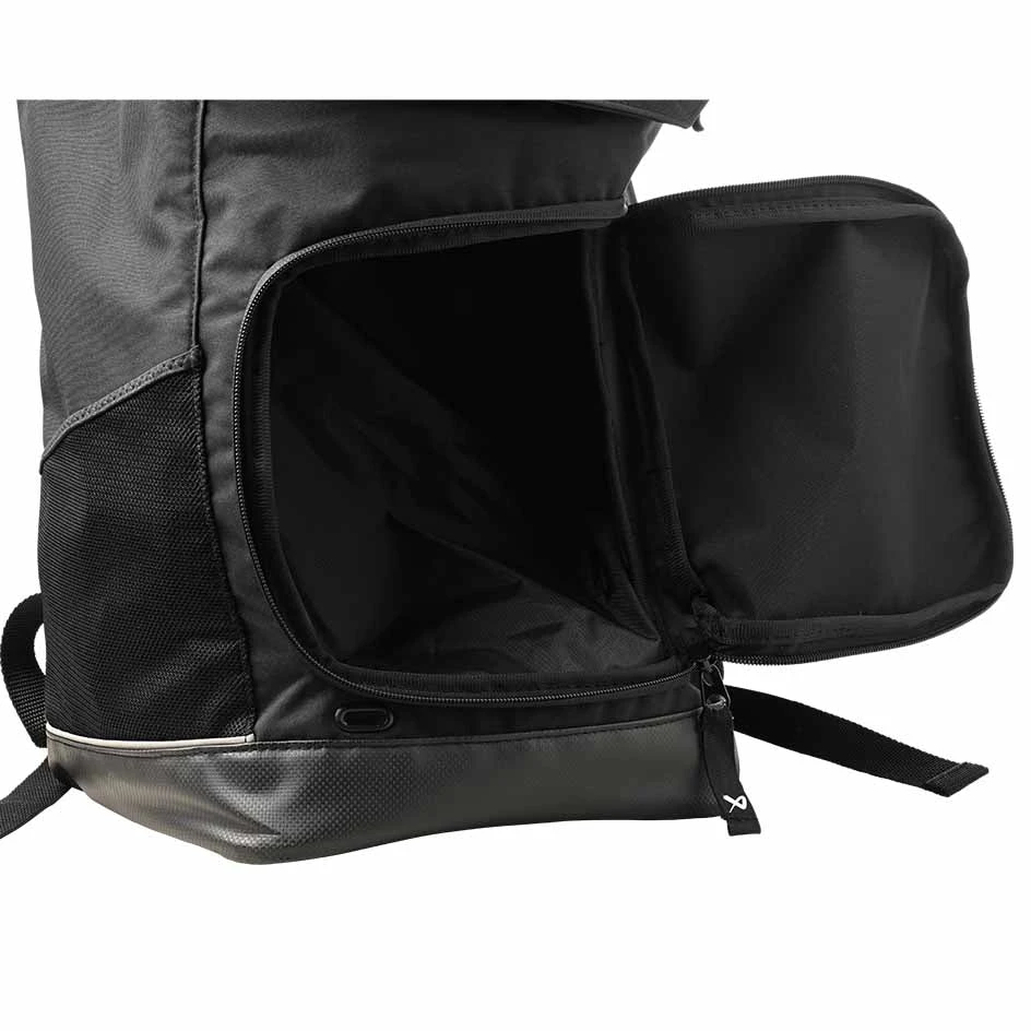 The top panel easily opens to access the main compartment, while the front compartment securely stores shoes or wet items away from the rest.