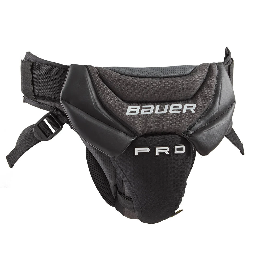 The Bauer Pro Goalie Jock Senior has an ergonomic waistband design keeps a comfortable fit and a double cup design for added protection.