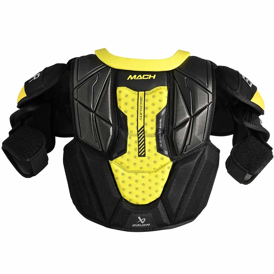 Protect your upper body like never before. The SUPREME MACH shoulder pads deliver full protective coverage with more flex points for added mobility so you can stay safe on the ice while performing at your best.