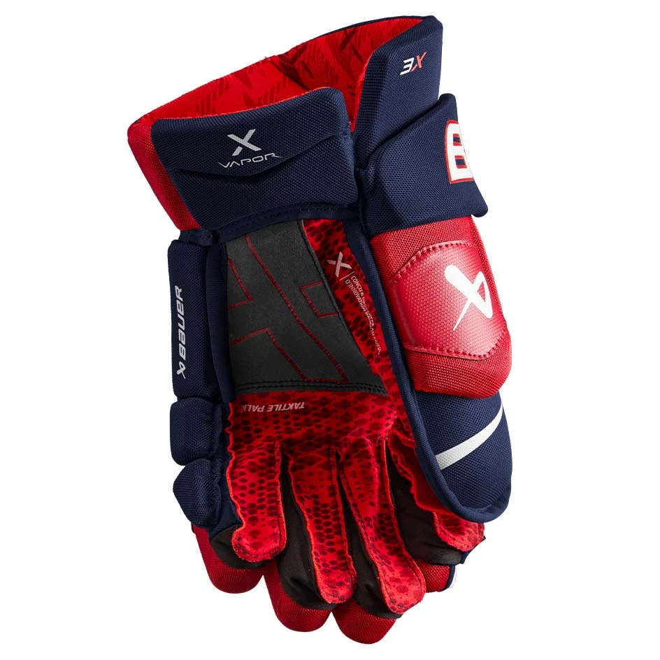 The dual density foam package gives the Bauer Vapor 3X Hockey Gloves Senior the perfect balance of protection and comfort.